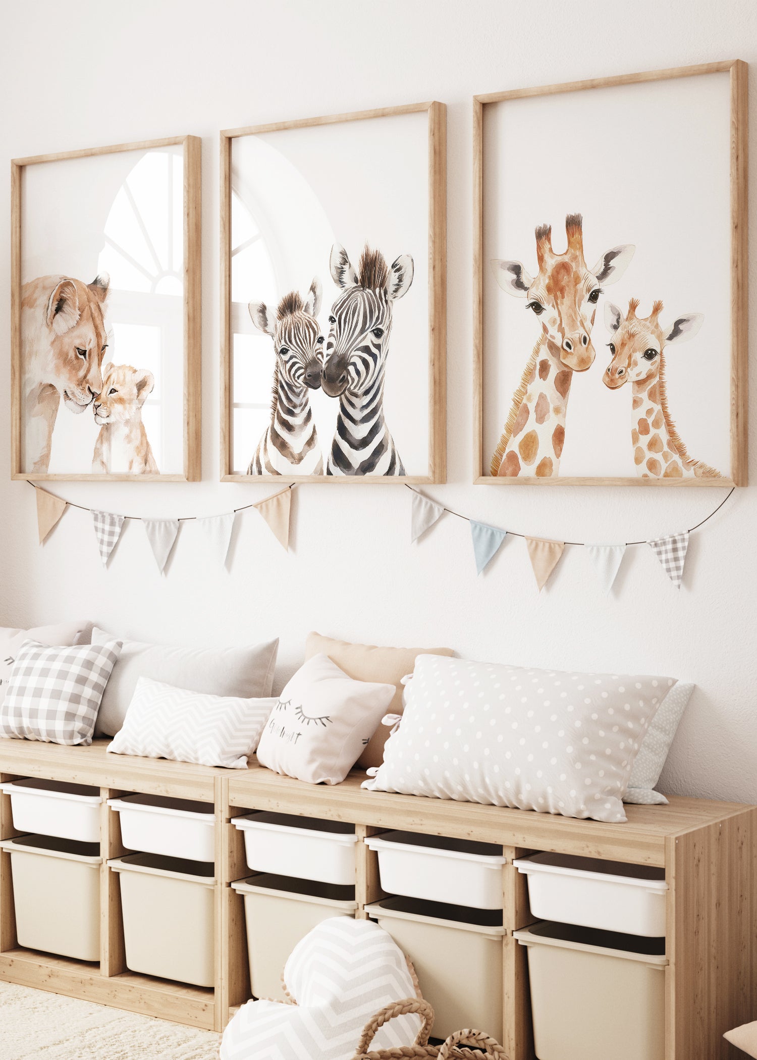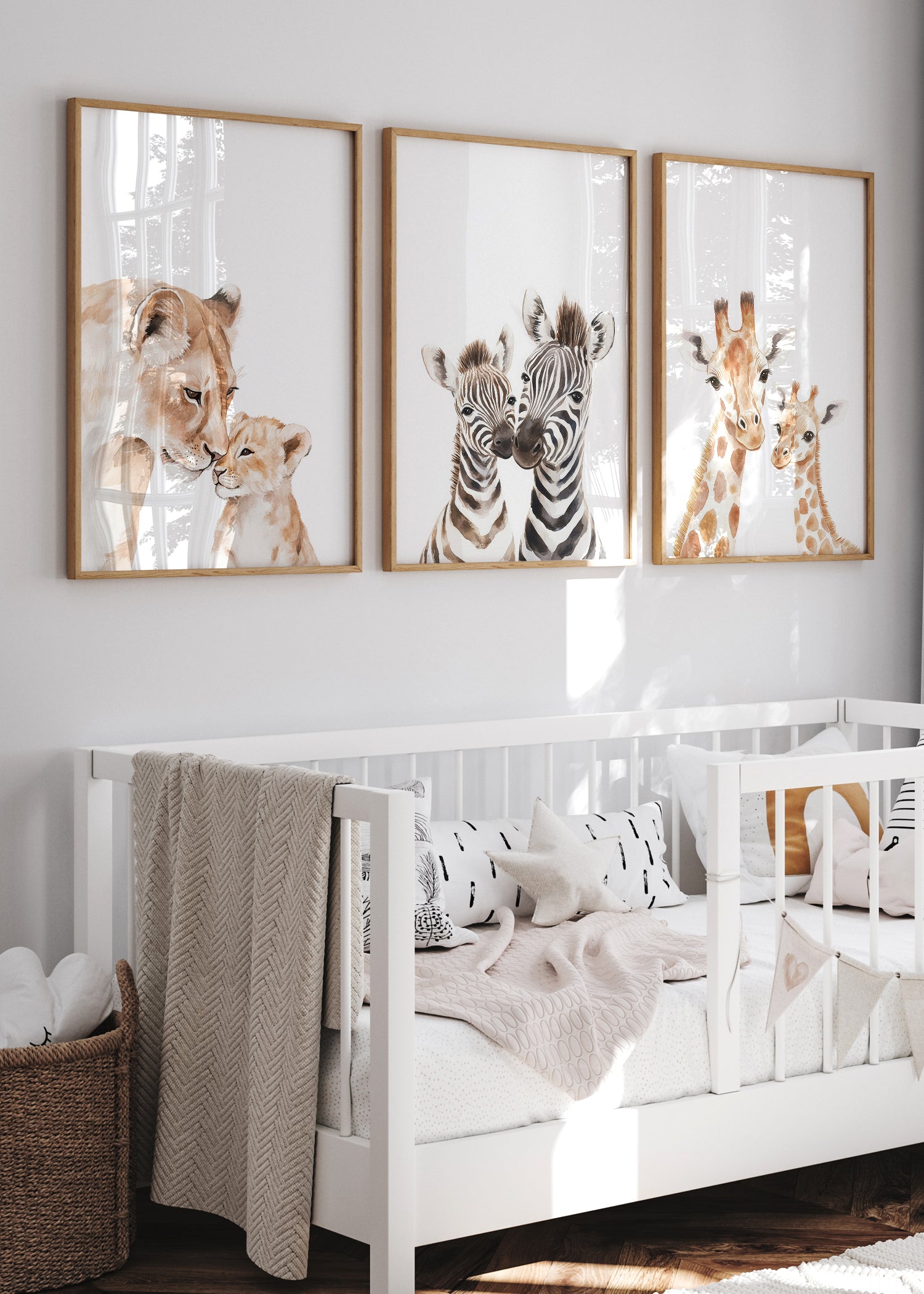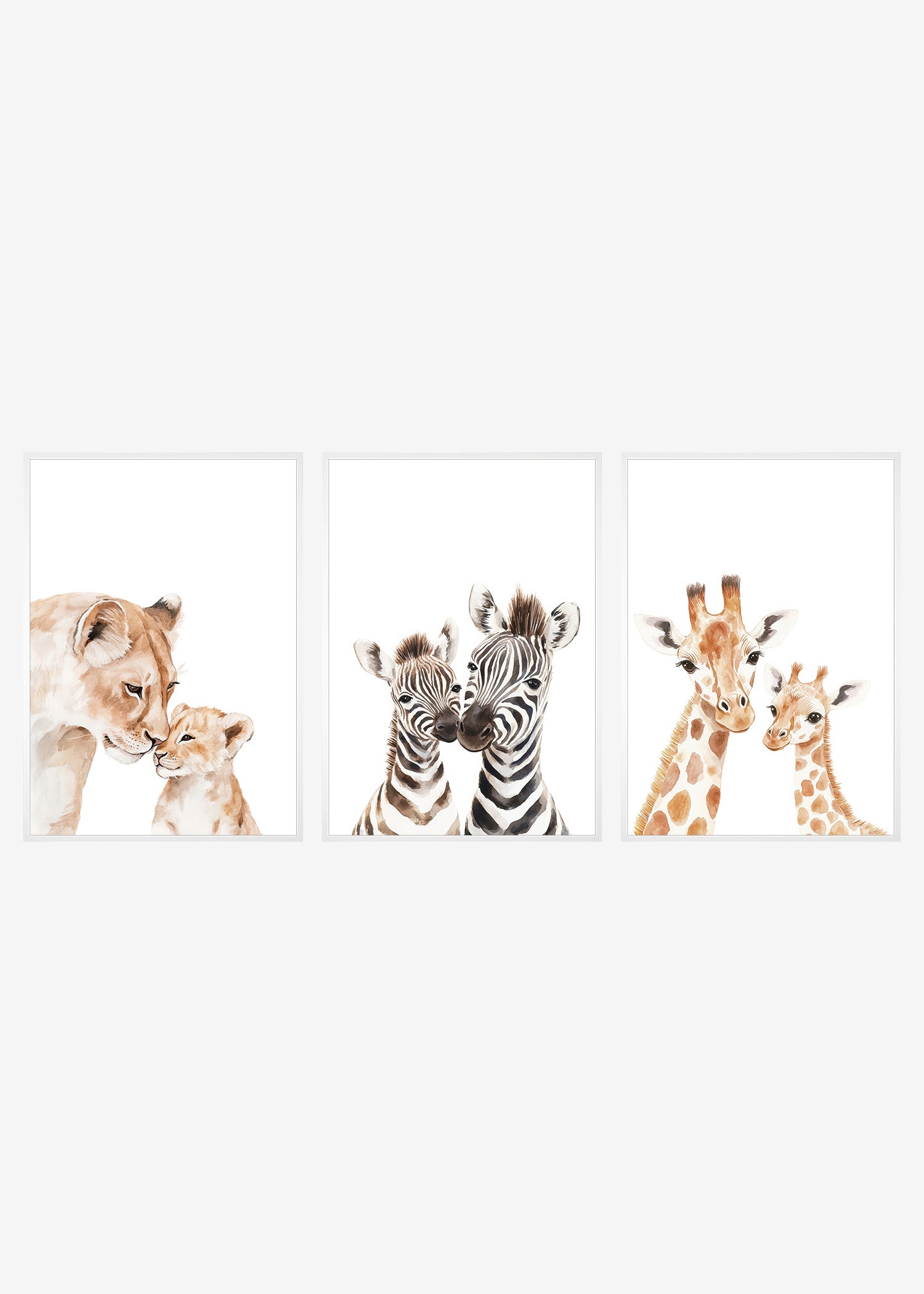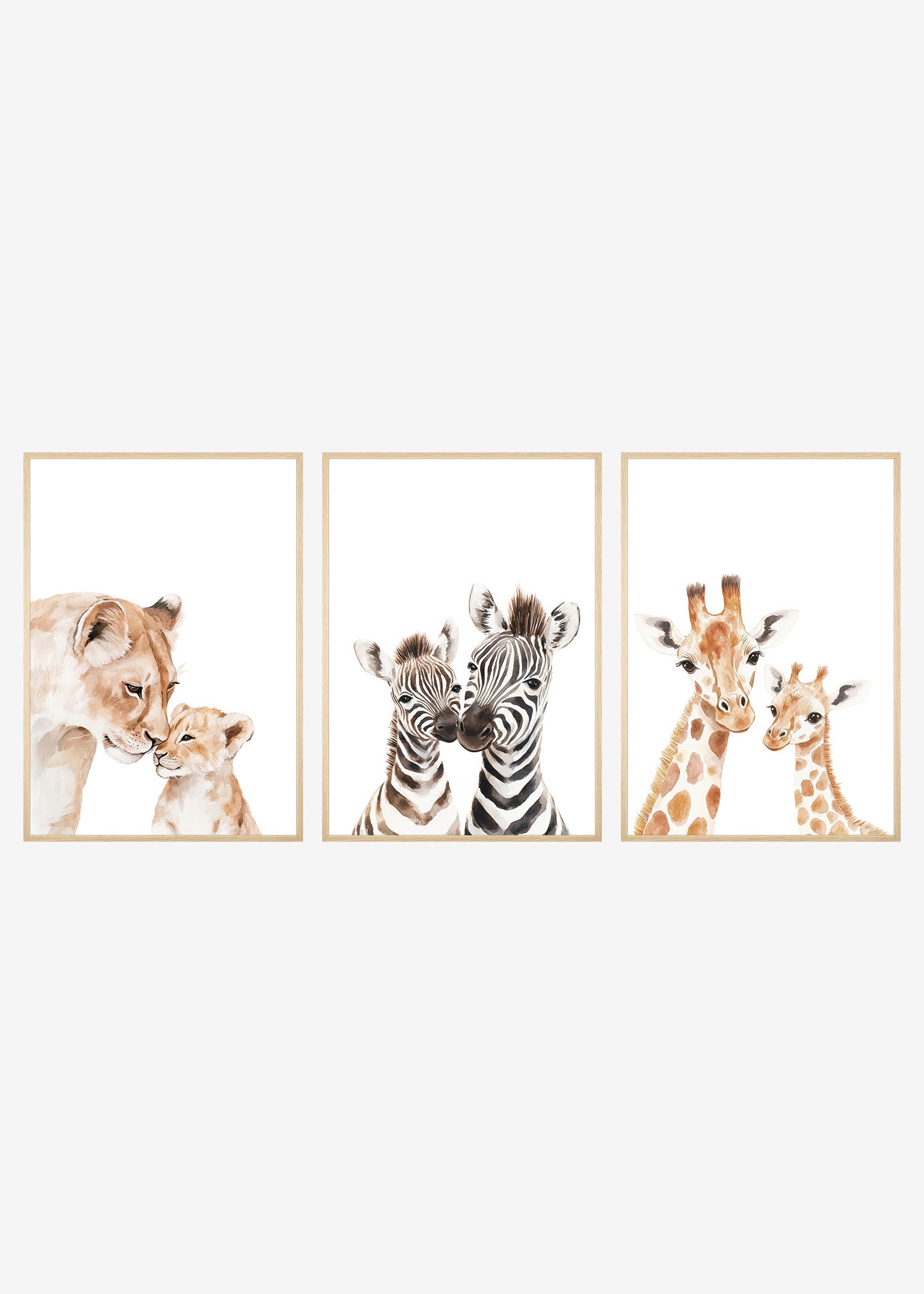 Tilføj et strejf af naturens skønhed til børneværelset med vores 3 mor og baby safaridyr plakater. Serien fanger den unikke kærlighed mellem mor og unge og skaber en varm og indbydende stemning.