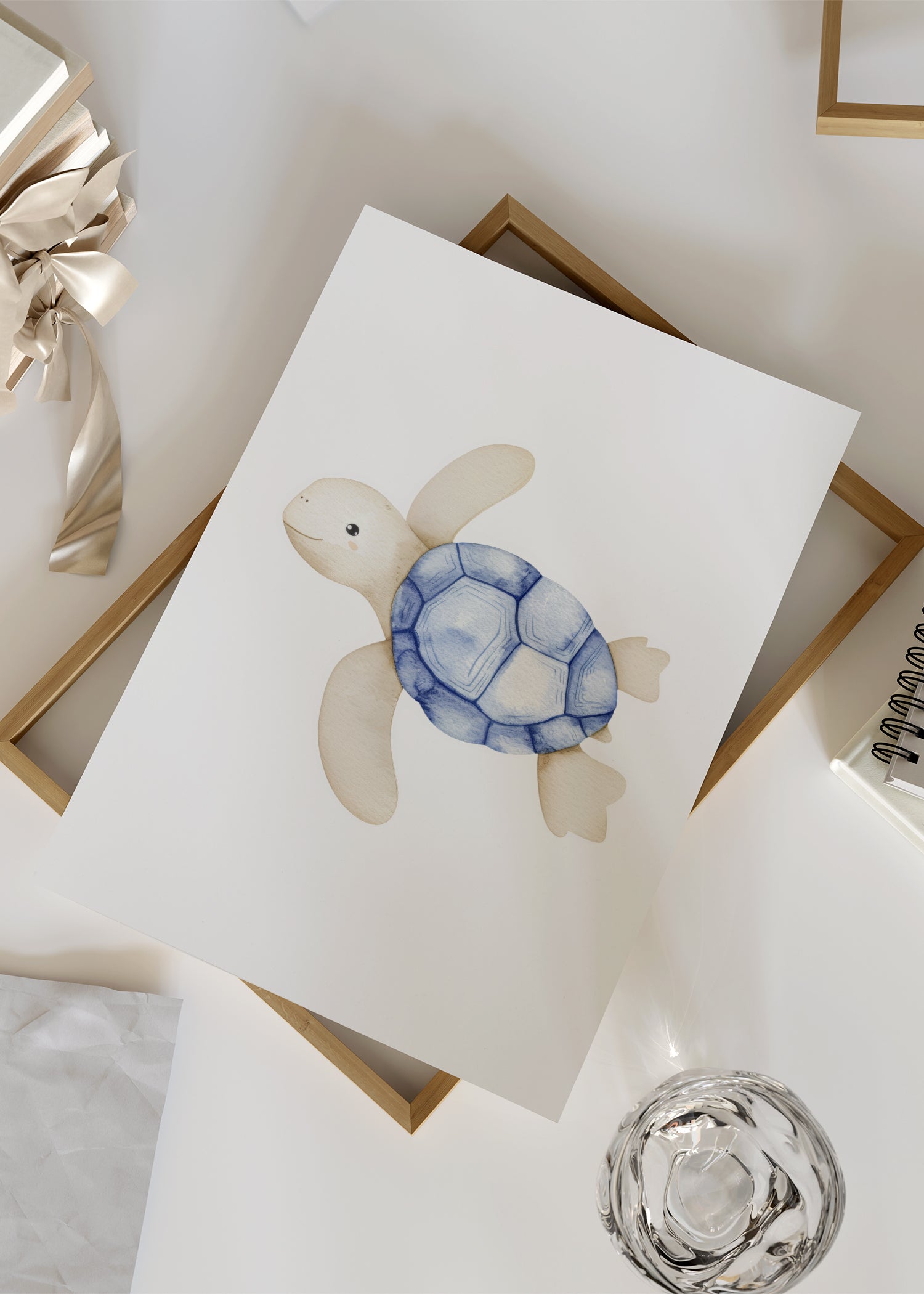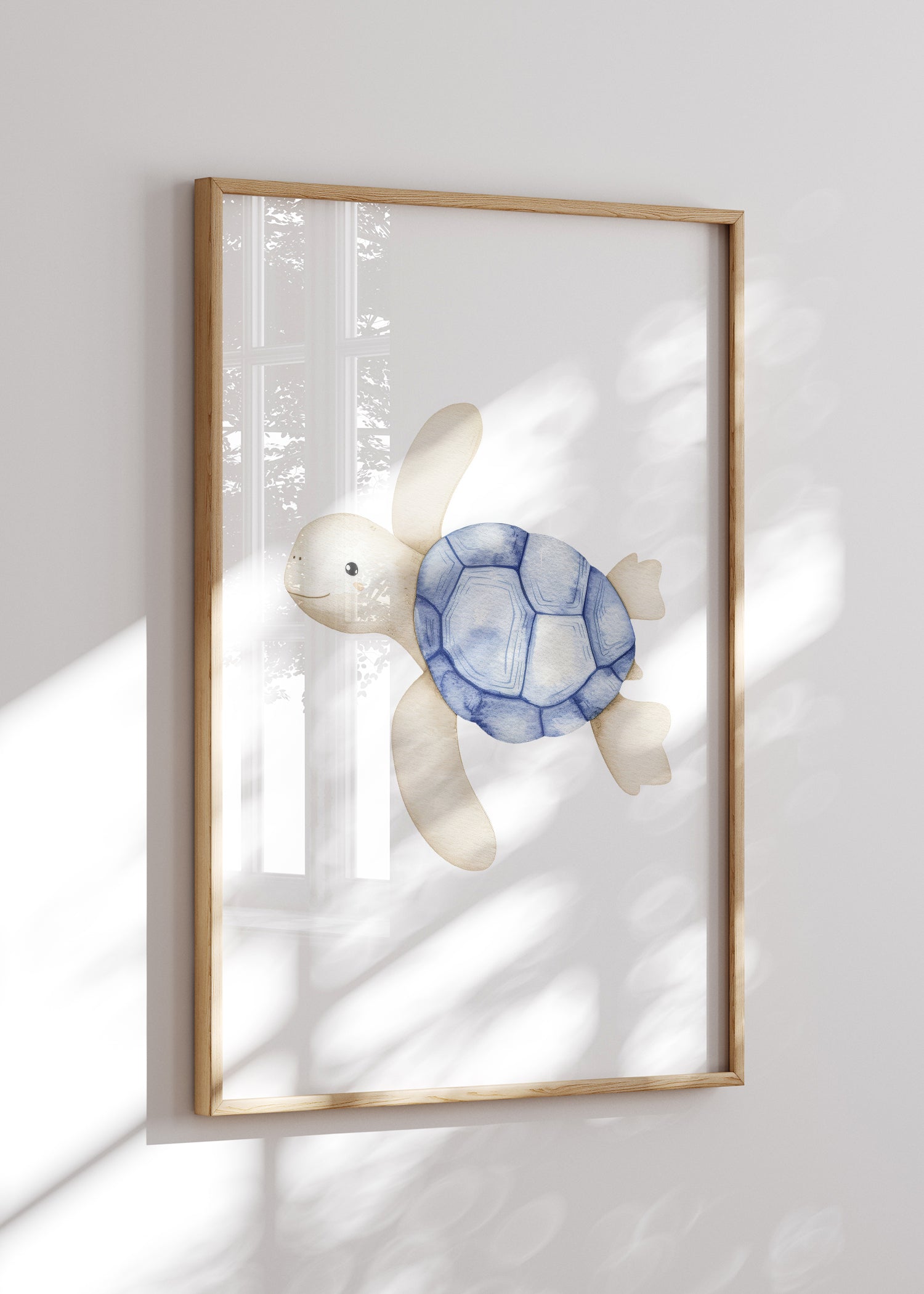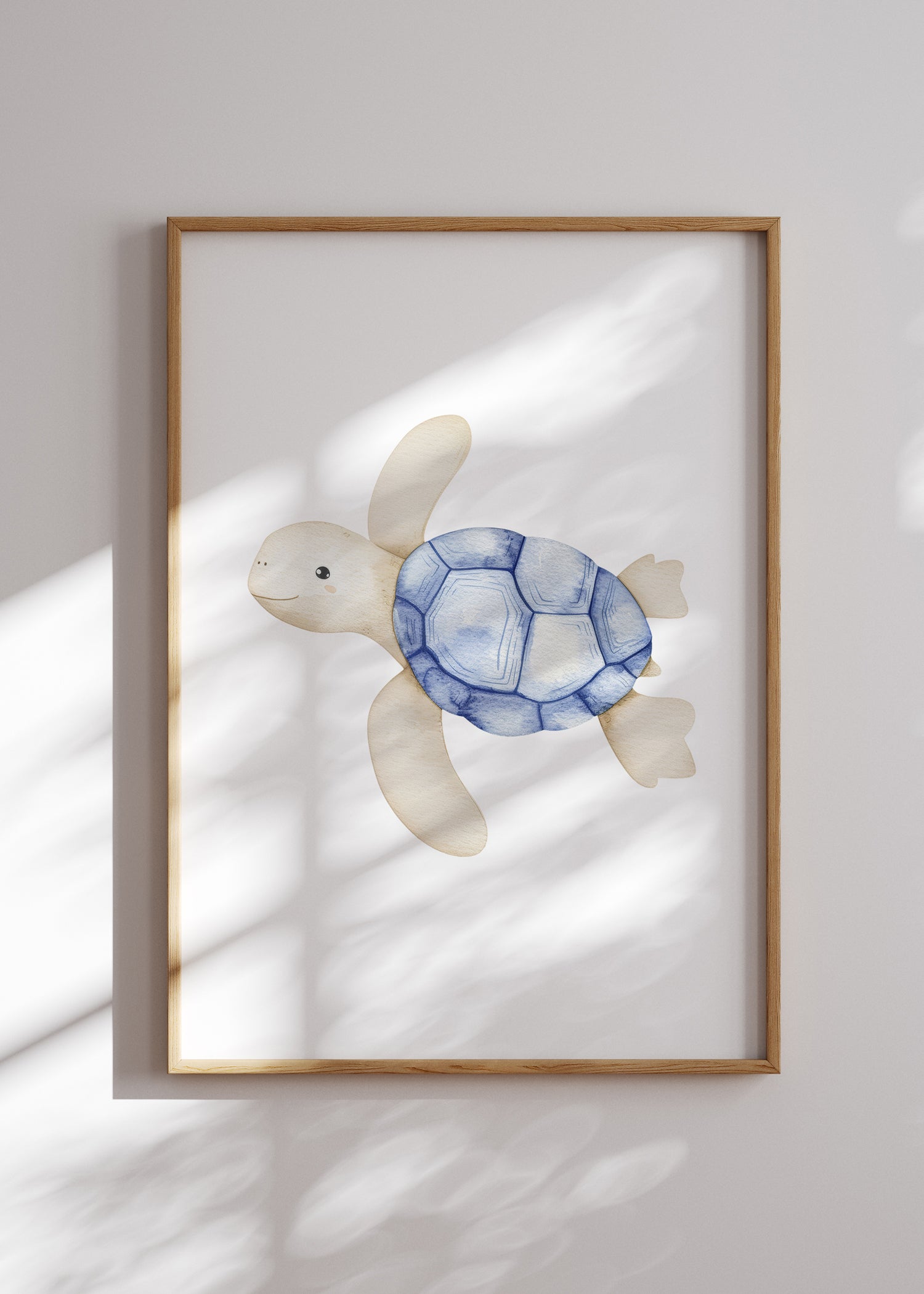 Tilfør børneværelset en legende og beroligende stemning med vores fine søde skildpadde plakat. Den glade skildpadde svømmer roligt frem og bringer et strejf af havets charme ind i dit hjem.