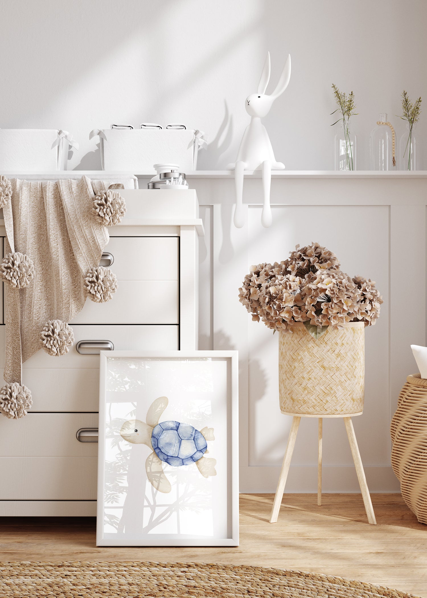 Uanset om du hænger den alene eller kombinerer den med vores andre plakater med havdyr, vil den være et elsket element i børne- eller babyværelset. Den indbyder til fantasi og nysgerrighed i et trygt og smukt miljø.