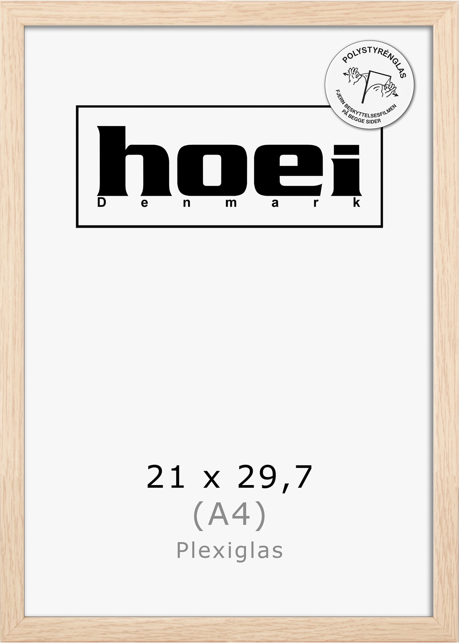 Flot ege look ramme i en flot lys træfarve. Rammen er A4 (21x29,7 cm) med kvalitets plexiglas, der giver klar synlighed og god beskyttelse af din kunst.