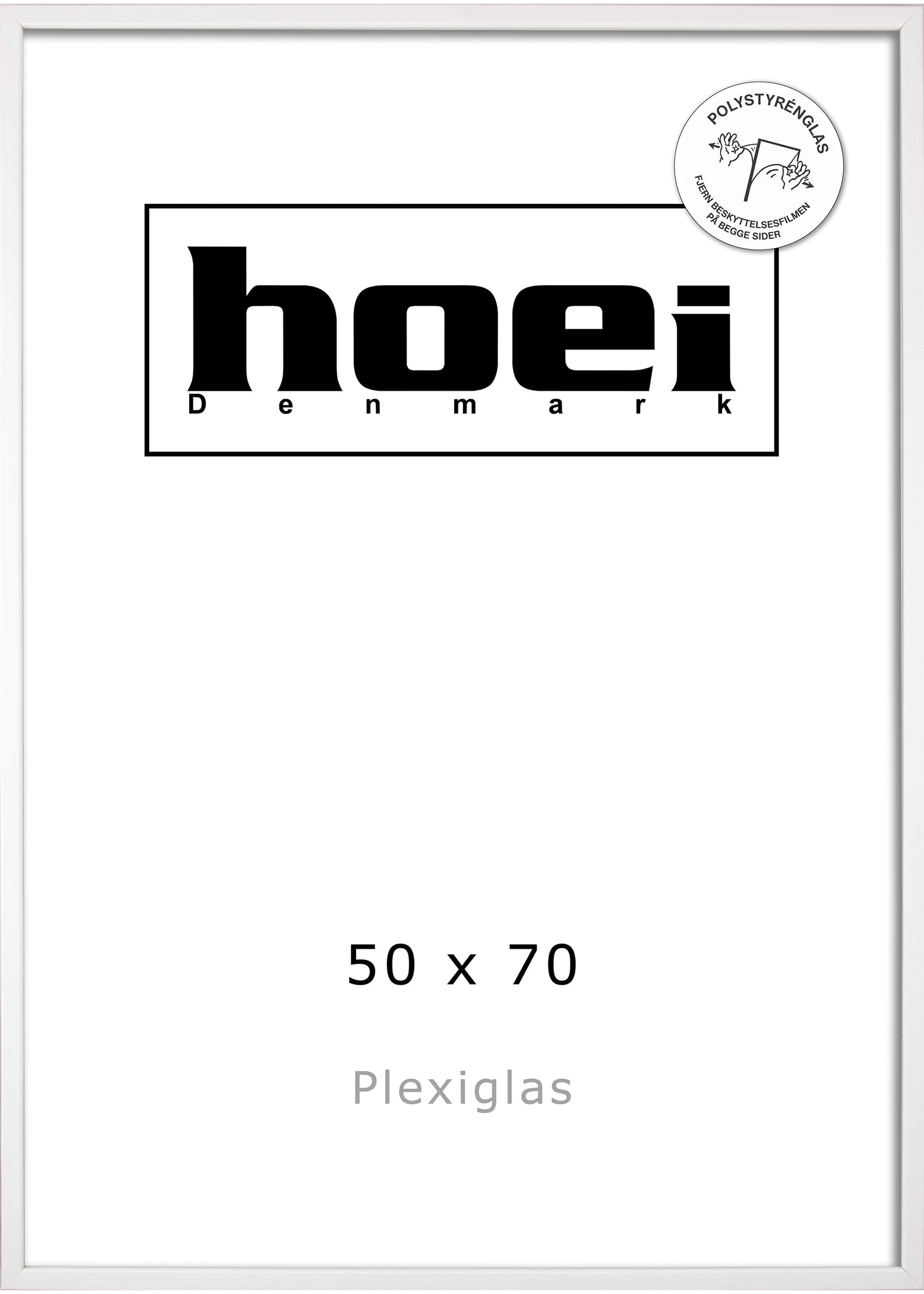 Rammen er med MDF bagside samt ophæng, der gør den nem at montere. Denne hvide 50x70 cm ramme er fra Hoei Denmark, der er kendt for deres høje kvalitet og holdbare materialer.
